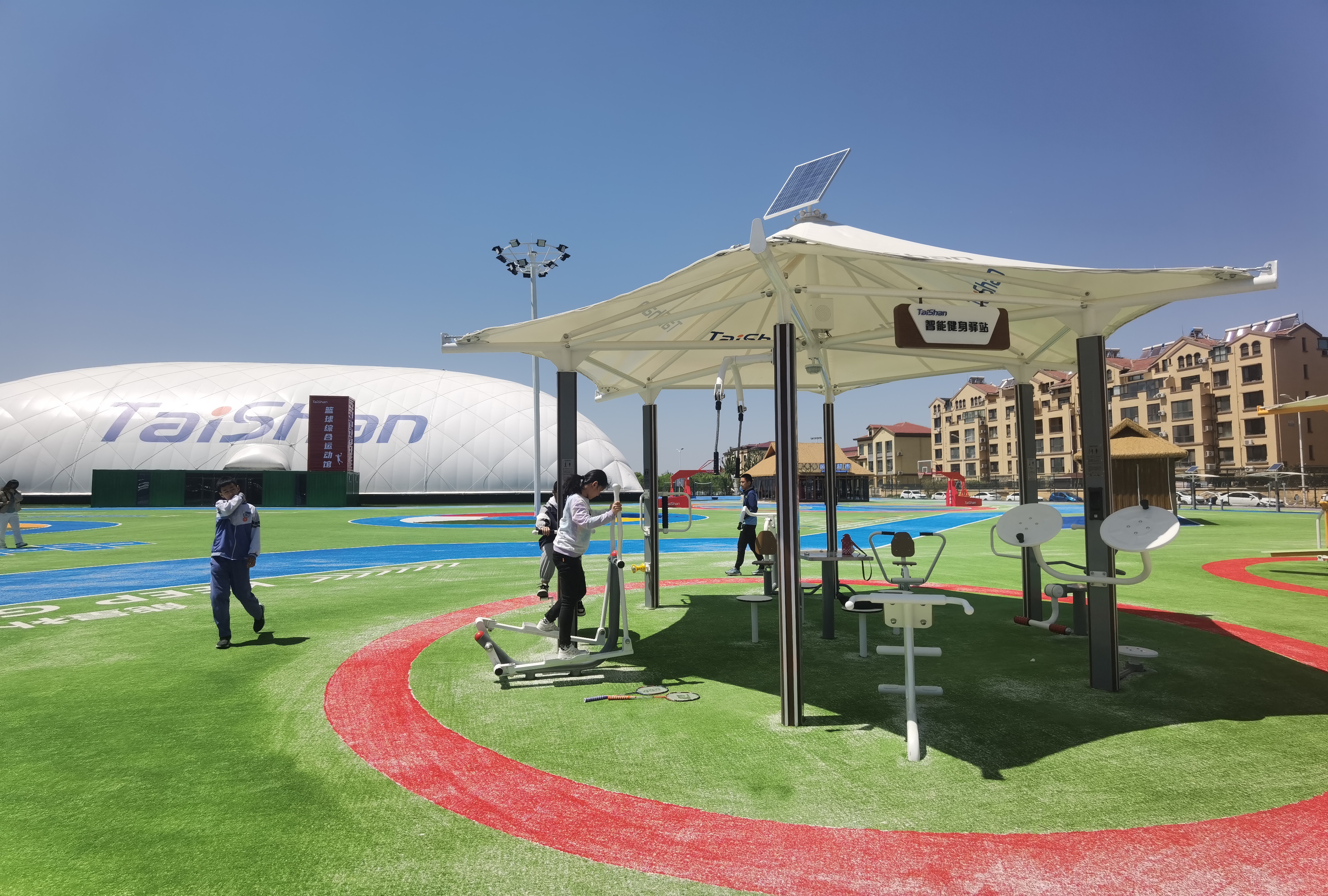 泰山智慧體育公園占地面積16000㎡,由智慧健身步道、新型體育建筑、智慧運動器材以及酷炫運動場地組成一環(huán)四區(qū)的基本運動功能格局,由兒童嬉戲區(qū)、青年樂動區(qū)、老年健身區(qū)及綜合體育館構(gòu)成,具備全齡、全季、全項目的使用條件。