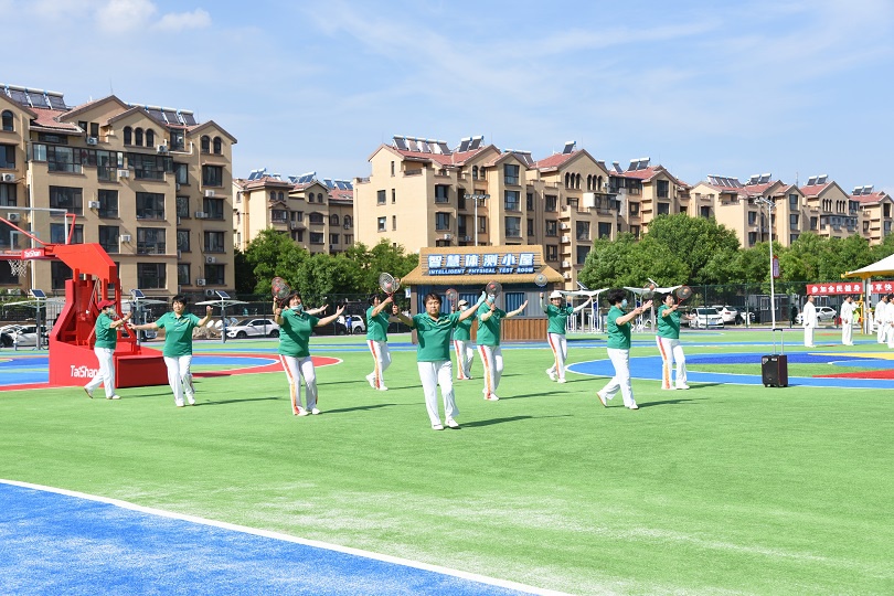 儀式結(jié)束后,與會領(lǐng)導(dǎo)一同參觀了泰山智能體育公園,并現(xiàn)場觀看了山東省男子青年籃球隊邀請賽、兒童籃球?qū)官?、青年街舞展演賽以及太極拳、柔力球展演。